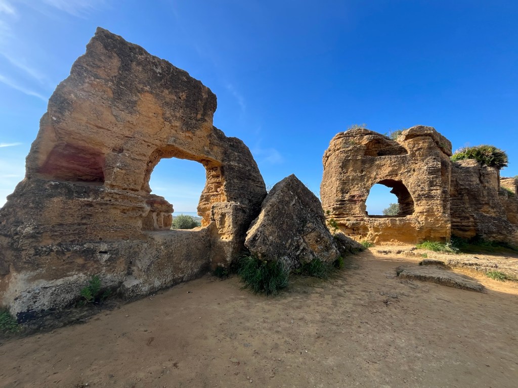 The ruins here were built in many different centuries, from Greeks to Romans and hard to believe, lost for hundreds of years as the area became agricultural and the ruins overgrown 😬