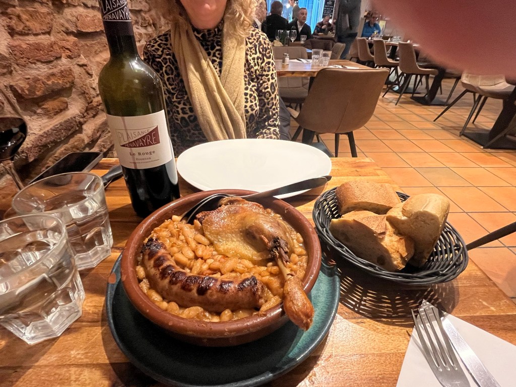 The regional specialty of the area is Cassoulet, a hearty dish of beans, broth and meats. We love the Duck and sausage version made with rendered duck.