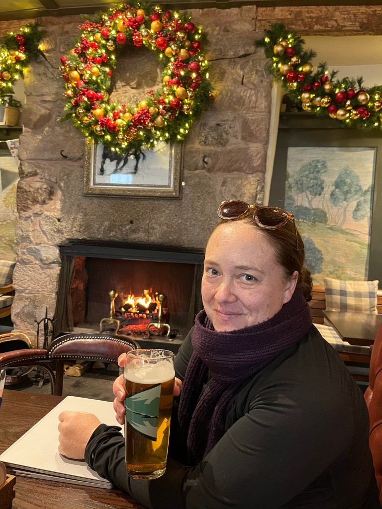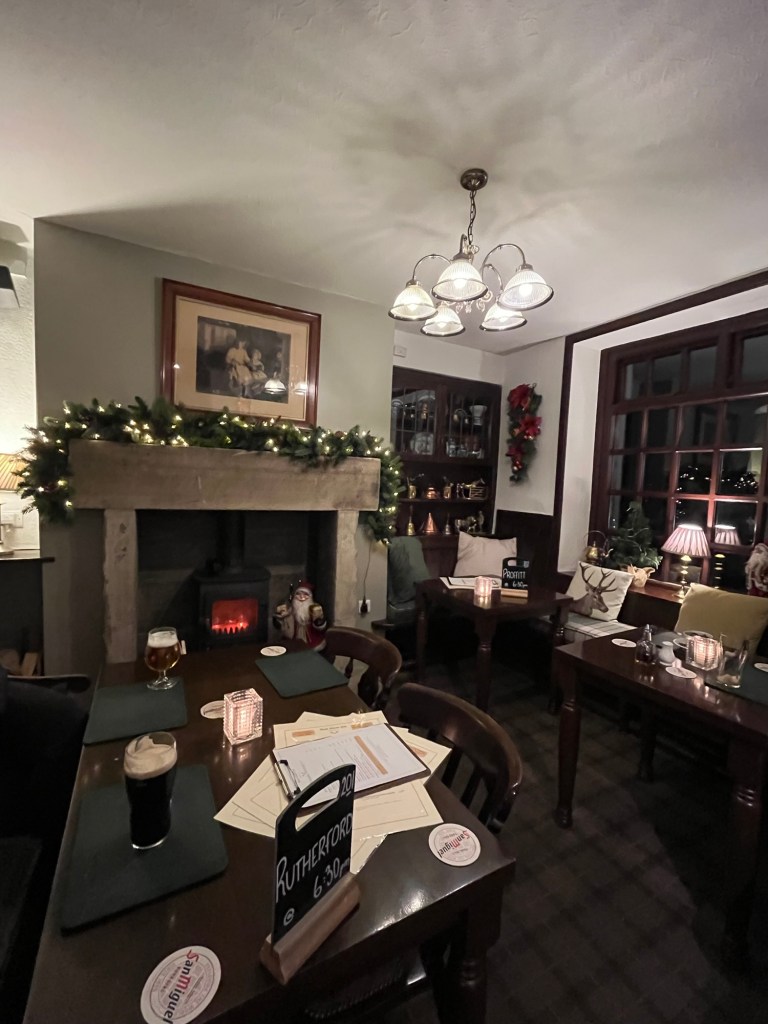 Well, we still had time to stop in to a fun little pub right on the Whisky Mile and enjoy a pint. (A little side note, we had a group of men all dressed in their full Scottish regalia next to us. One at a time they would disappear out into the street and 15-20 minutes later would reappear and another one would disappear doing the same. As we left the pub, there one was, out in the street playing the bagpipes for the people passing by. So funny, after each shift they would go and enjoy another pint with their bros! We contributed to their fun! 🤣🍺🎄
